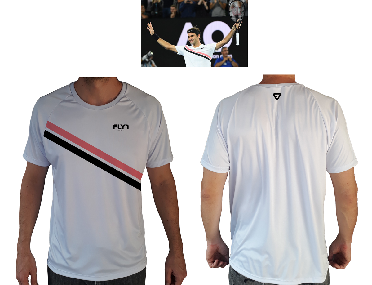 Camiseta Padel Ídolos Branca com Listra Rosa e Preta Federer _PD_022